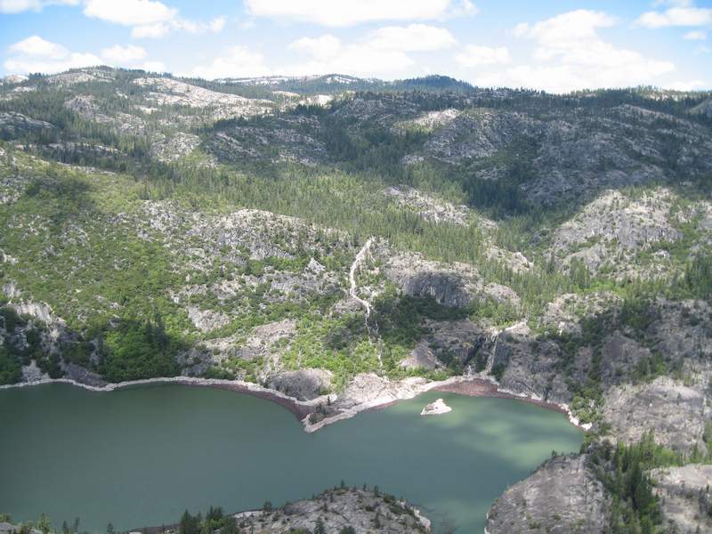 The vista point rises 2,000+ feet above the Donnells Reservoir and the Middle Fork of the Stanislaus River. During